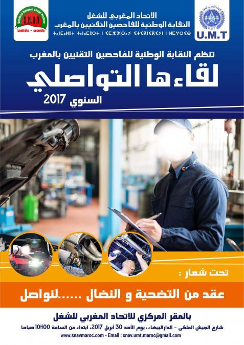 تتشرف النقابة الوطنية للفاحصين التقنيين بالمغرب، المنضوية تحت لواء الاتحاد المغربي للشغل، بإخباركم أنه تقرر عقد اللقاء التواصلي للسنة الجارية تحت شعار: